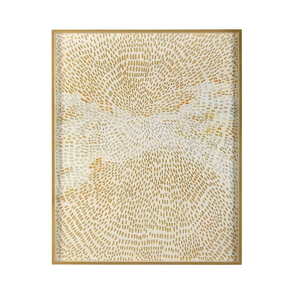 This textured art is hand cut and hand painted. The paper is layered over a hand painted background to give depth and dimension to this piece. This artwork by Matt McDowell is framed in a gold frame.