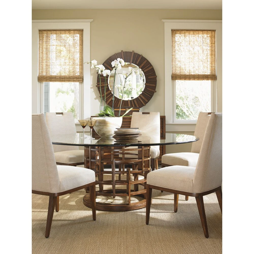 Marketing Copy: With a refined yet restrained aesthetic, Pan-Asian design ascribes great value to visual composition, clean disciplined lines and the goal of infusing tranquility into today’s contemporary décor. Island Fusion embraces the Zen side of Tommy Bahama Home, with bold designs that blend horizontal and vertical elements, dramatic statement hardware and accents of eclectic natural materials that offer a unique look to every piece. The result is a striking modern expression of personal style, with a vibe that feels relaxed and livable. Statement pieces define the room, while custom upholstery offers an invitation to enjoy the laid-back comfort of casual sophisticated living.