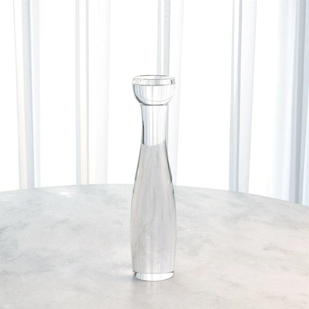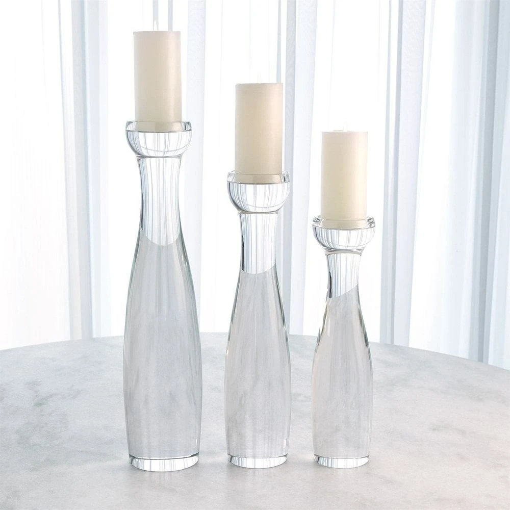 Designed to complement each other, the Modern Crystal Candleholders can also stand alone as stunning sculptural statements. Please do not place in direct sunlight, crystal can magnify the light of the sun and potentially cause a fire hazard.