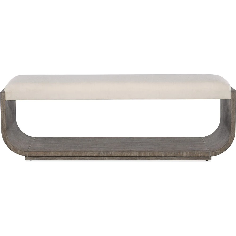 Description: Serene, soft and stylish with a cloud-like floating appearance, the monochromatic Modern Mood Bench is upholstered in a cozy Boucle fabric and finished in the dark Mink color with wire-brush detailing. The base is crafted of Quartered Oak Veneers.