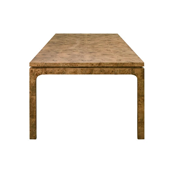 Description: MODERN RECTANGULAR DINING TABLE IN DARK BURL WOOD