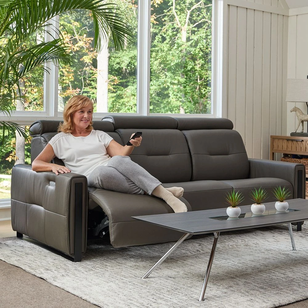 Description: The Fjords Monte Carlo is as relaxing as it is beautiful. It features the design, tailoring and commitment to detail that you have come to expect from Fjords furniture. The sofa is constructed as a modular system. Each seat has the option of power or stationary. The power seats offer two motors, one to operate the concealed footrest and backrest and the other to operate the headrest cushion for additional comfort. Controls for the two operations are located on the seat. For those who do not want power, a stationary module which features a manually adjustable headrest is available. There is no option for a manual footrest on the stationary model. The Fjords Monte Carlo is available as a one, two or three seat sofa.