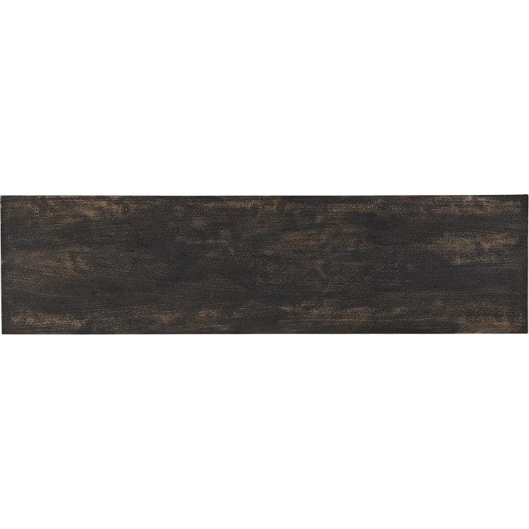 - Finish: Black finish with rub-through. Honeycomb pattern metal overlay is antique bronze with antique bronze starburst. Large rectangular hardware in metal and agate.