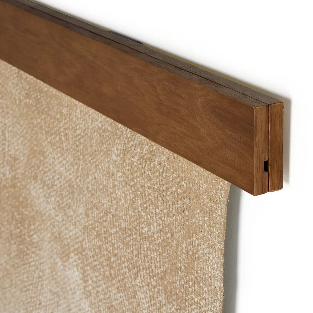 Inspired by the Texas Hill Country, Austin-based artist Aileen Fitzgerald paints atmospheric landscapes reminiscent of early Impressionism with a heavy emphasis on light. One of her most popular pieces is translated into a large-scale tapestry. Woven from a poly/cotton blend with thick oak veneer hanging hardware in a light oak finish. Handmade in Austin, Texas.