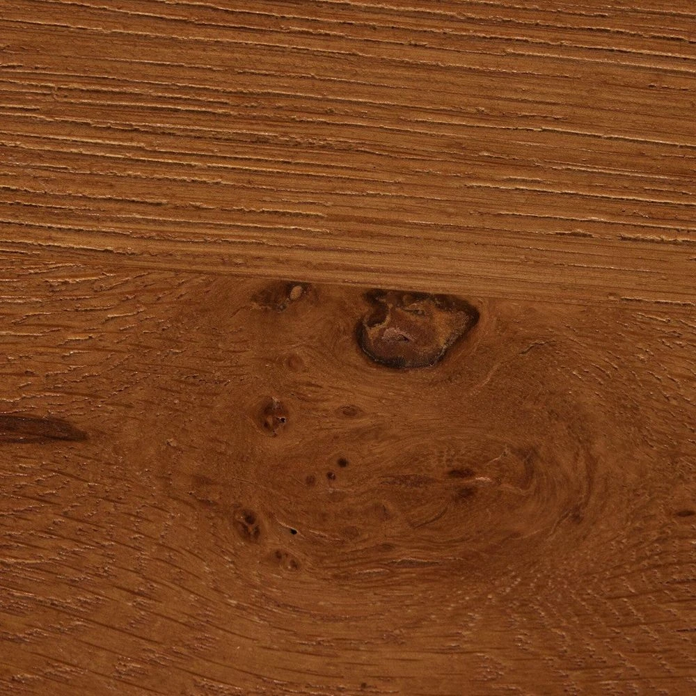 - Description: Dark-smoked oak forms clean, structured lines, crafting the finest of bar tables with rustic, ombre-evocative undertones. Streak-like highlights are common, and speak to woods which have been specially selected for their unique natural patterns and graining. A subtle variance in color and pattern is to be expected from piece to piece, and is reflective of materials’ organic sourcing.
