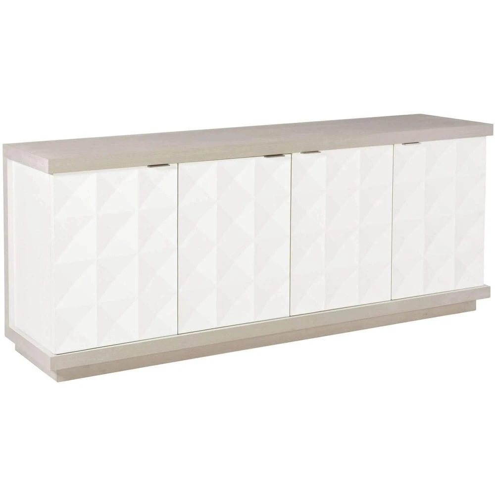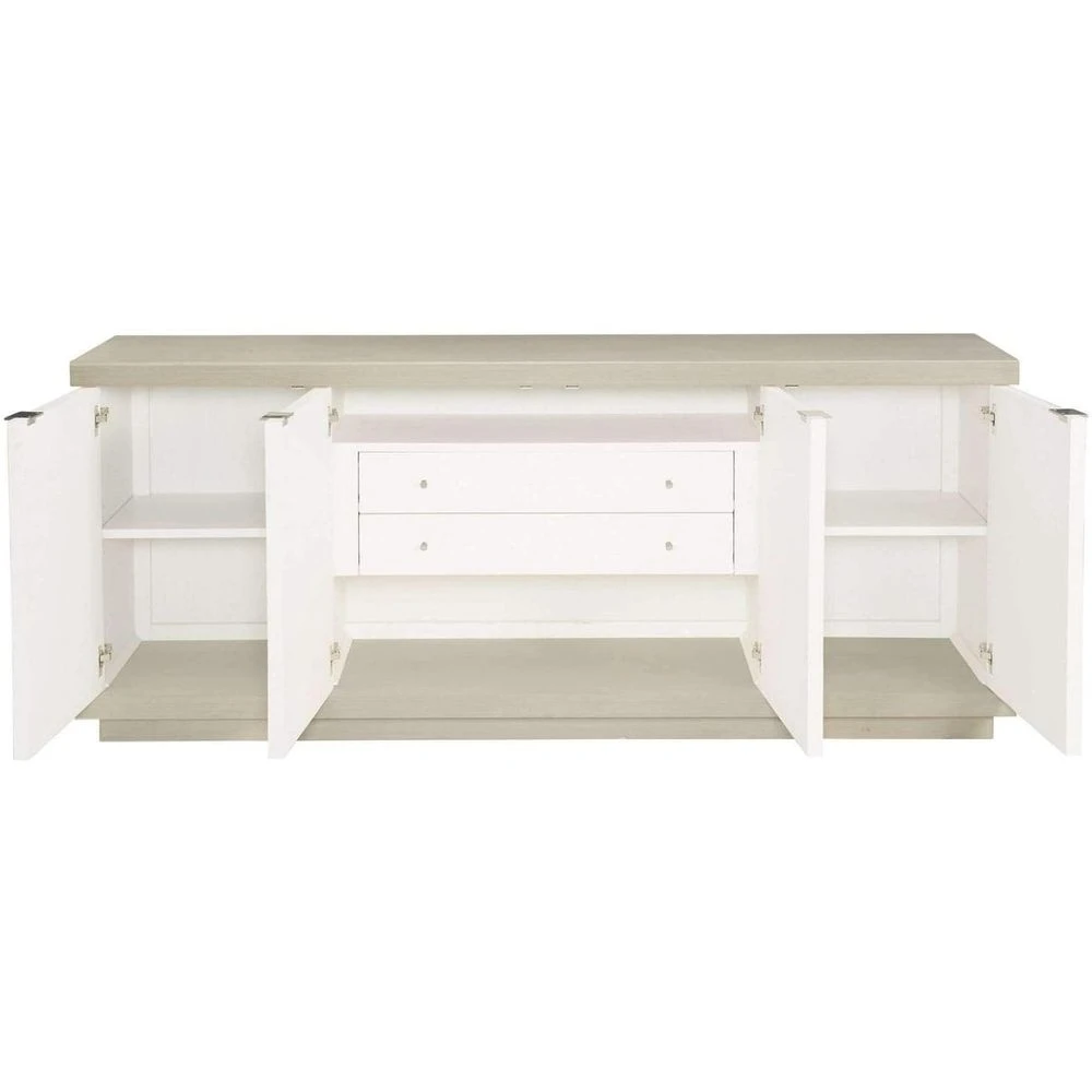 - Four doors with cast shaped overlays in White Linen finish with soft/self-closing hinges