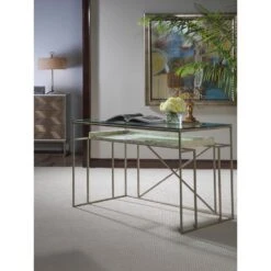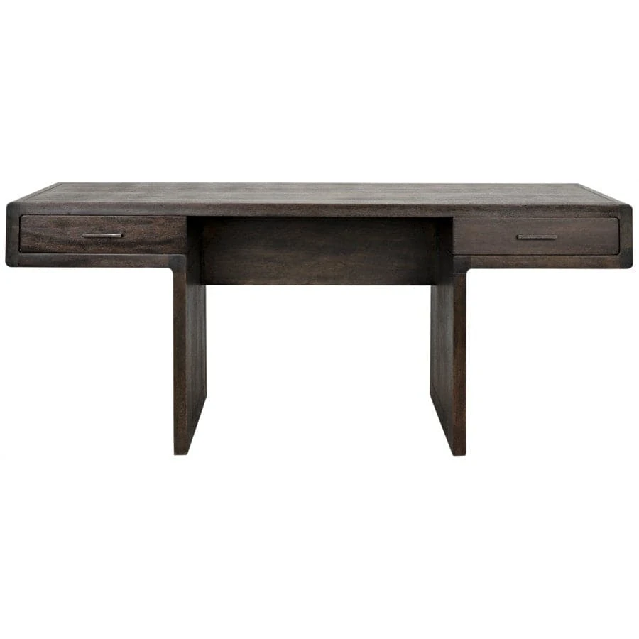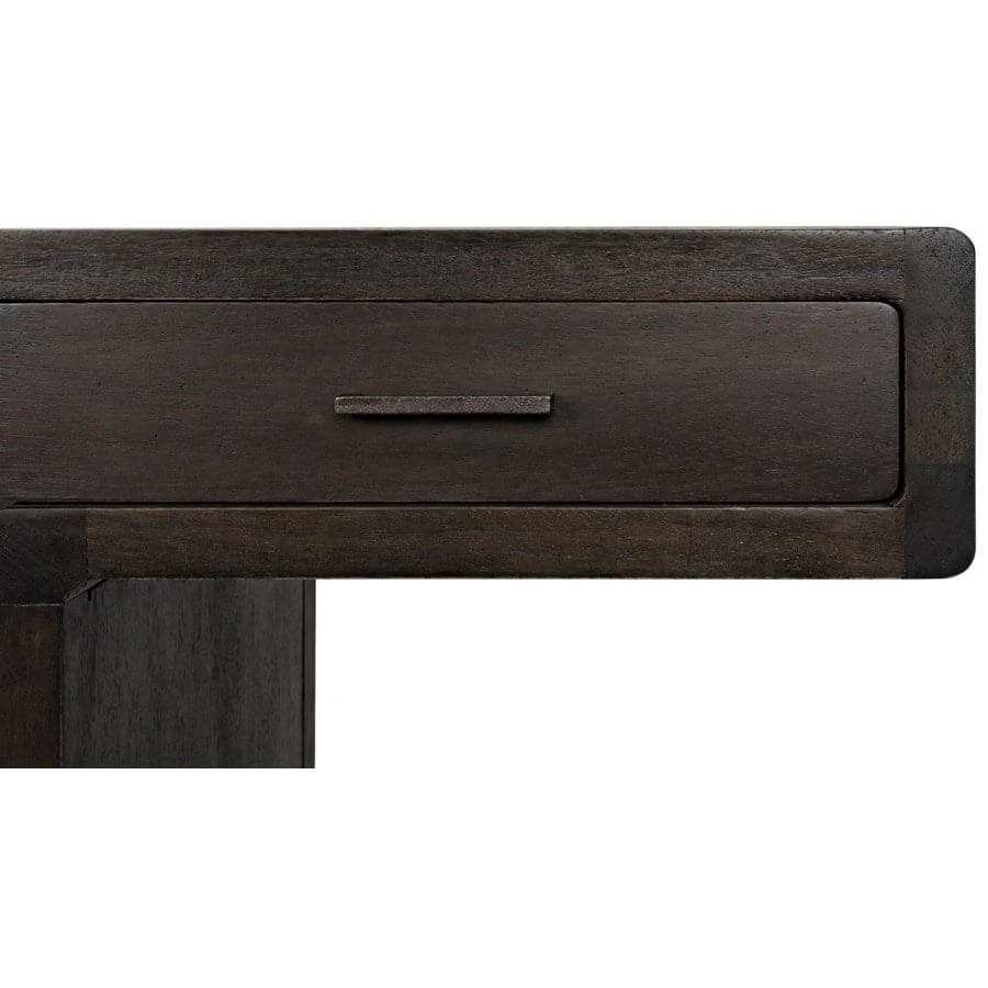 This clean and contemporary desk has a timeless “T” shape, and two drawers. Its simple, clean lines and striking, sharp edges are available in two finishes, Ebony and Washed.