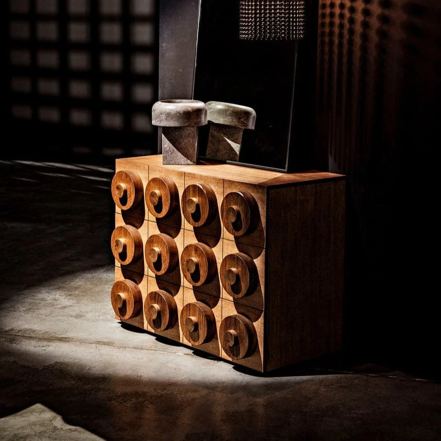 The Lego chest features 3 drawers and a stacked geometric relief design with grid motif drawer fronts. Use just one or combine more to form a larger piece that will take you space to the next level.