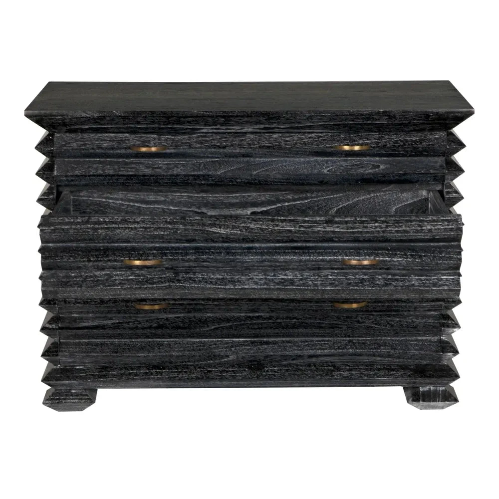 Finished in a timeless Cinder Black hue, the Tiago Chest effortlessly complements a variety of decor styles, from modern minimalist to classic chic. Its versatile design ensures it remains a timeless piece in your home for years to come.
