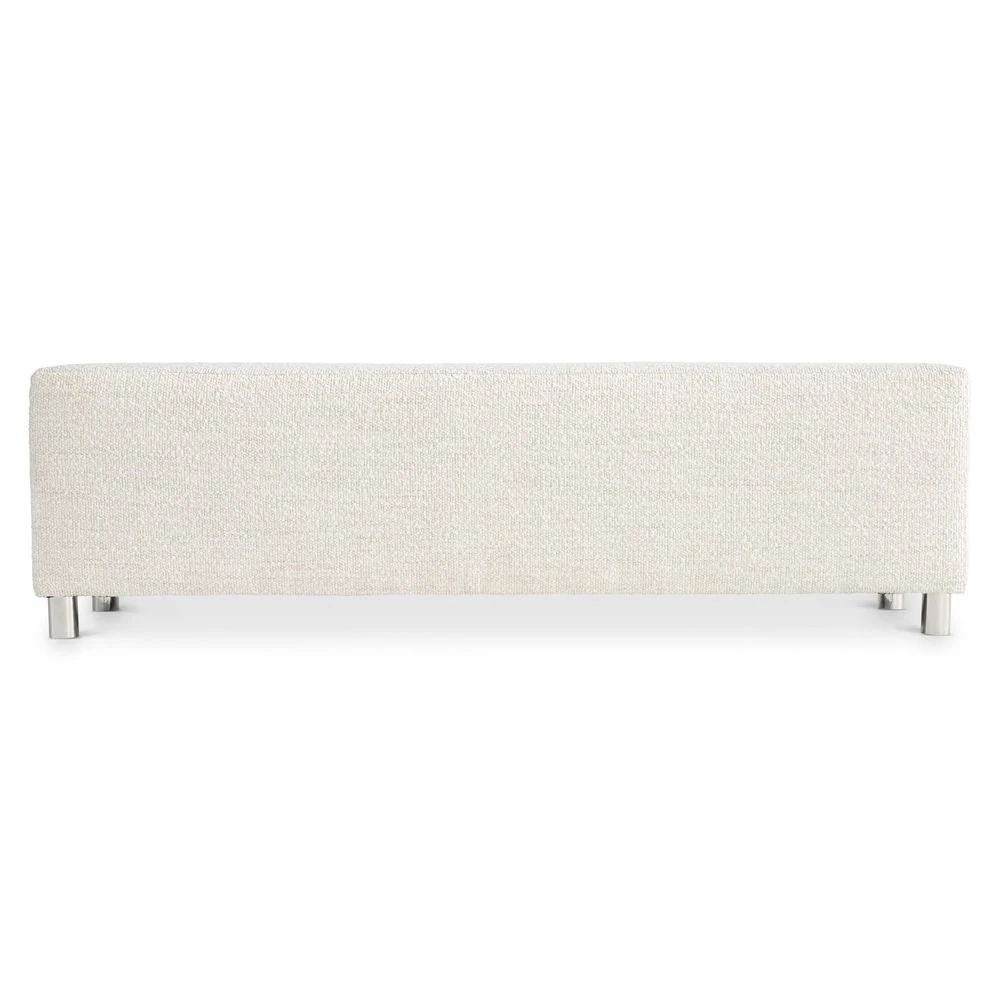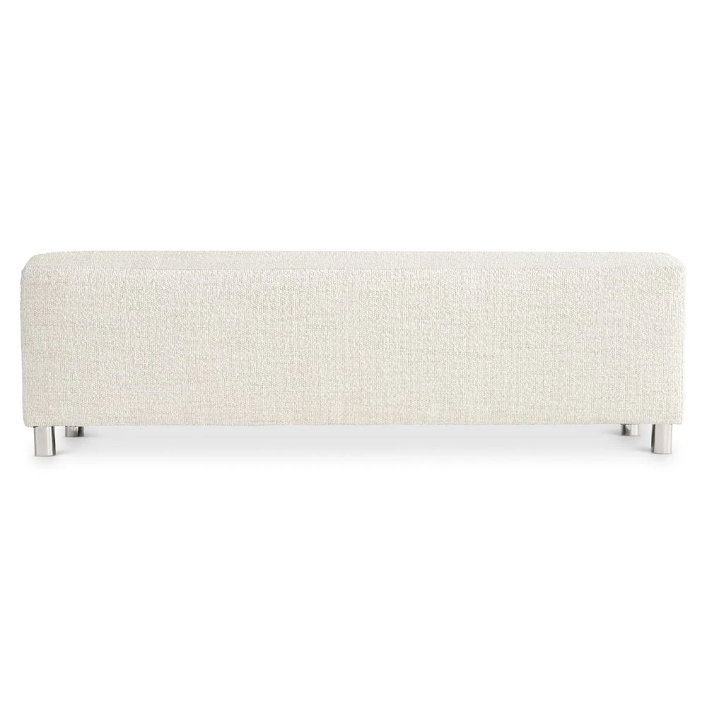 Description: Clean lines and an uncomplicated style create a lovely look in the Norterie bench. The fully upholstered design is a long rectangle supported by polished stainless steel feet. This bench proves that even the simplest designs can make a big impression.
