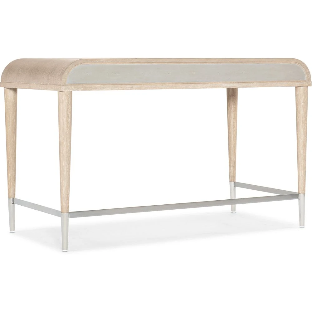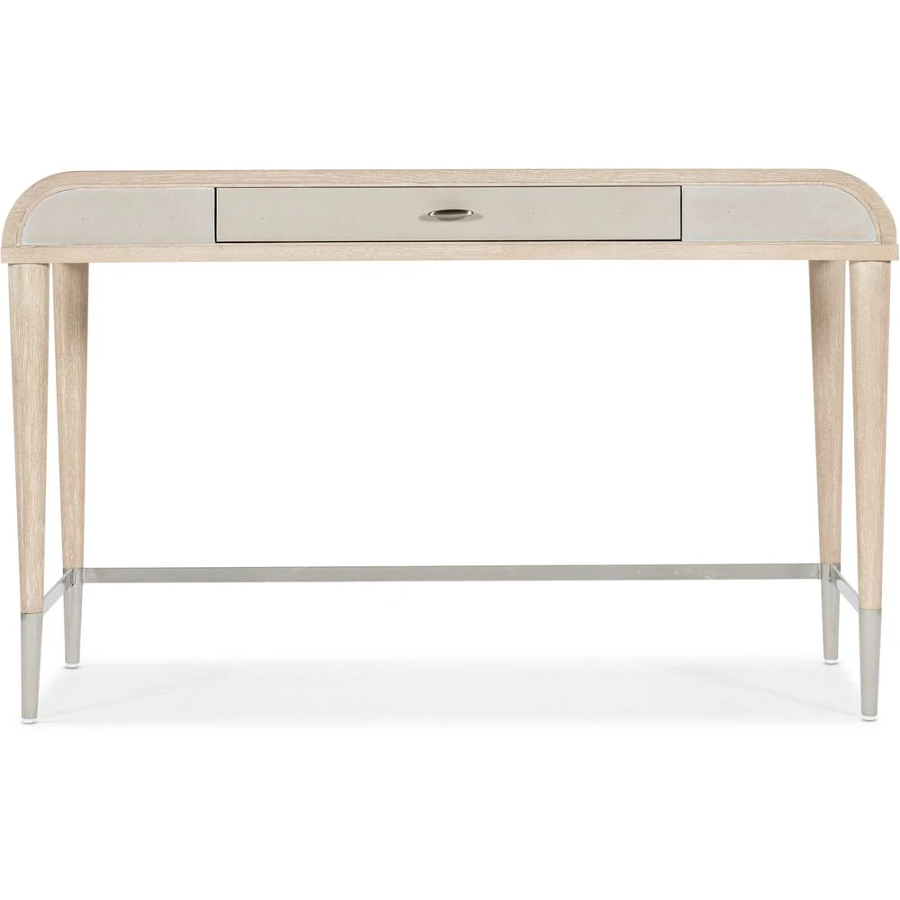 The Nouveau Chic Collection is a casual modern group drawing inspiration from the curvaceous yet uncomplicated designs that are popular today. Nouveau Chic unites classic architectural elements like cathedral and quartered oak, movement of soft shapes, metallicized shagreen, and polished metal accents to create a dramatic yet easy modern aesthetic.
