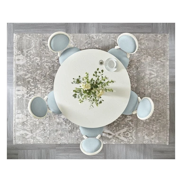 - Finish: Whites/Creams/Beiges, Top is Shell, a soft, textured sandblasted white finish. Base is Lagoon, a blue and gray faux stone finish.