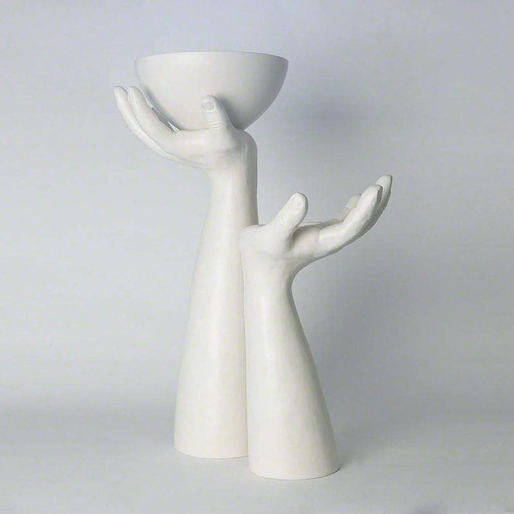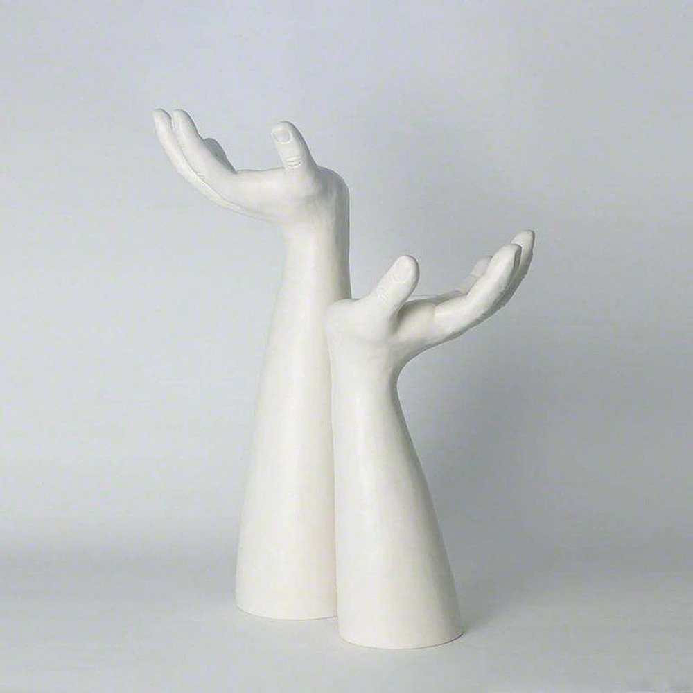 Artfully sculpted expressive hands are realized in fine Portuguese ceramic. Each hand can hold a 4″ pillar candle or the accompanying bowl (Sold separately; 7.10103). Each hand is sold individually.