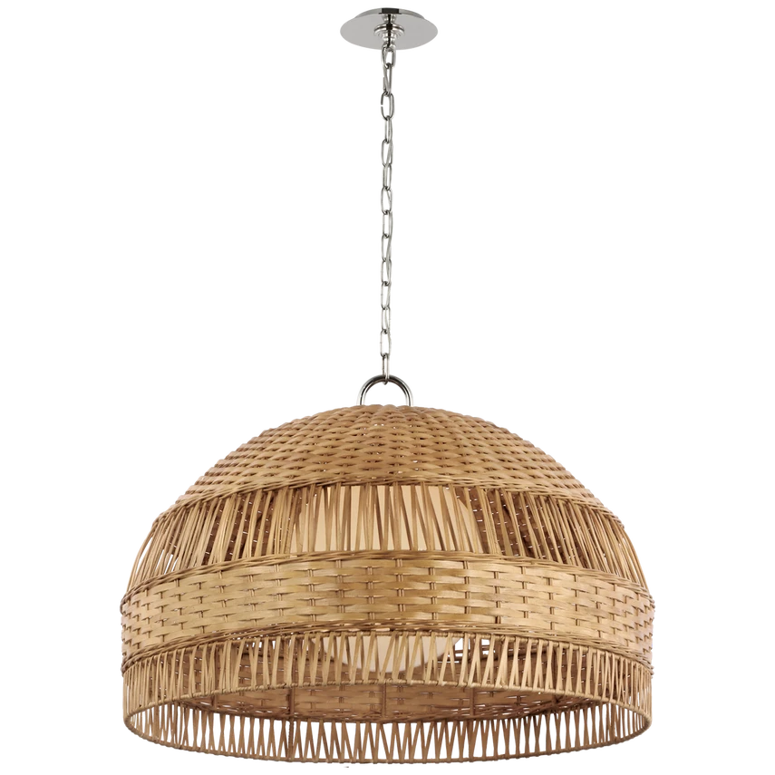 - Finish: Polished Nickel and Natural Wicker w/ White Glass Shade