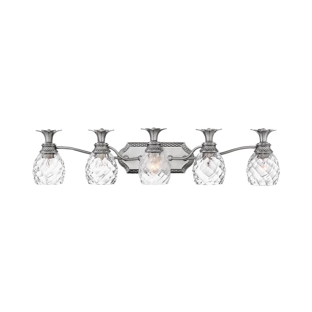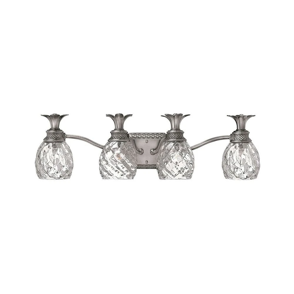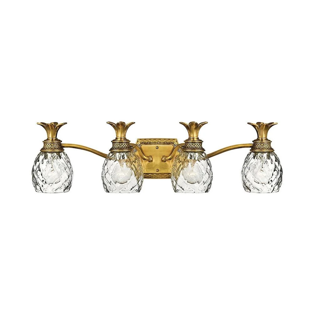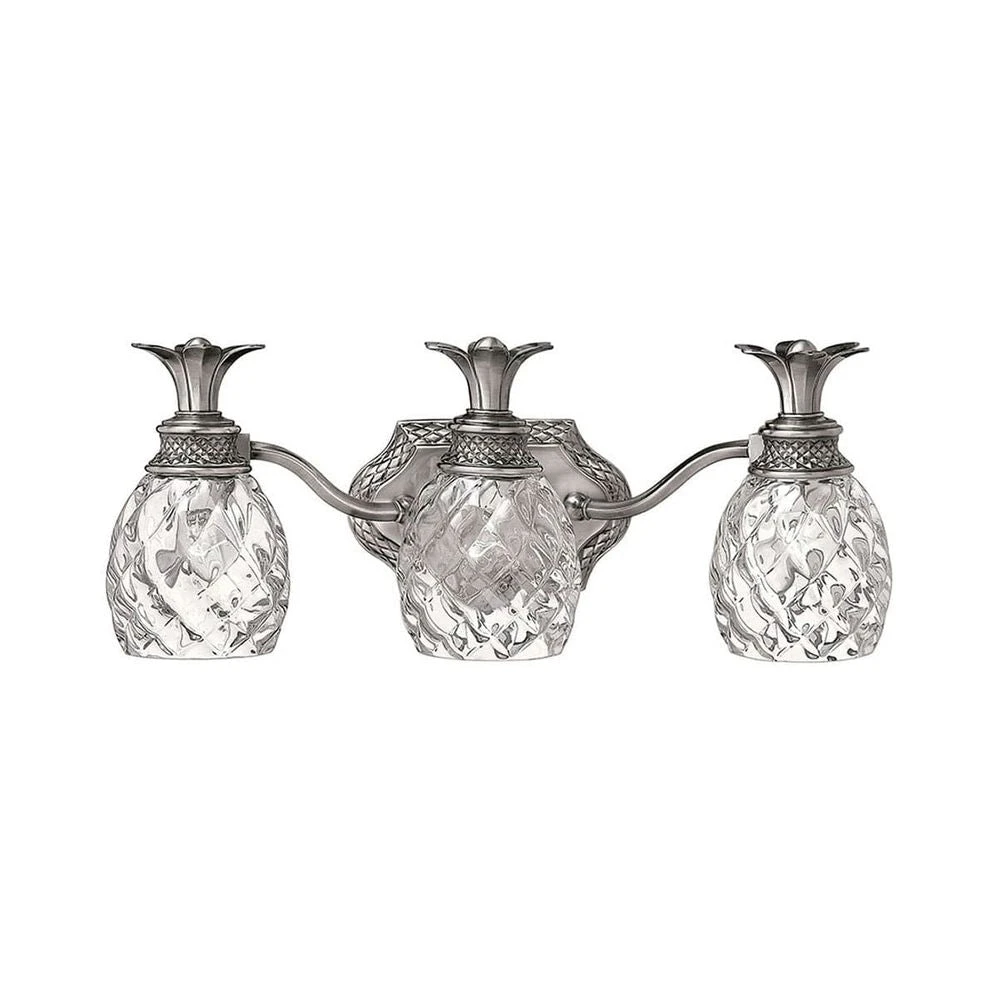 A Hinkley classic, the ornate Plantation collection features exceptional pineapple-shaped, clear optic glass that makes a noble statement. The elaborate, decorative cast detailing is accentuated by its lush finish.