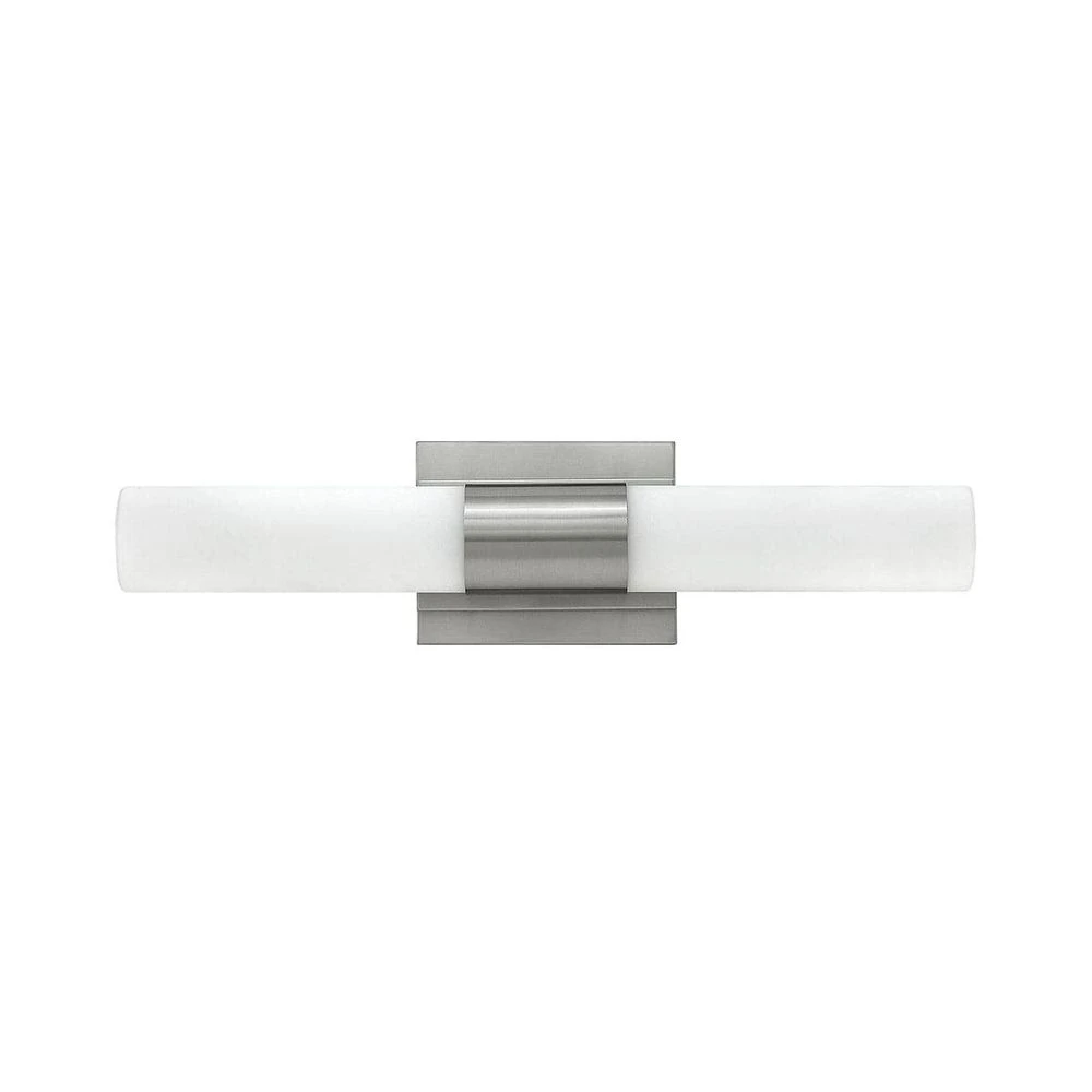 Portia’s slim profile unifies design and technology. A pair of blown etched opal glass cylinders extends from a center metal fixture body, creating a streamlined cylindrical form. Finished in either Brushed Nickel or Polished Nickel, this eco-efficient linear LED collection is fully dimmable and provides even, warm white light. The raceway back plate and optional junction box cover plate provide multiple mounting opportunities.
