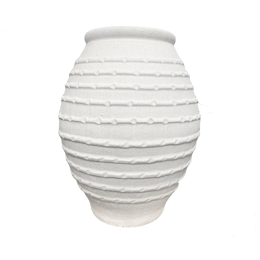 These large ceramic planter really make a statement. This neutral finish is compatible with any decor. These pots have a graceful design element with multiple rings. Two sizes available.