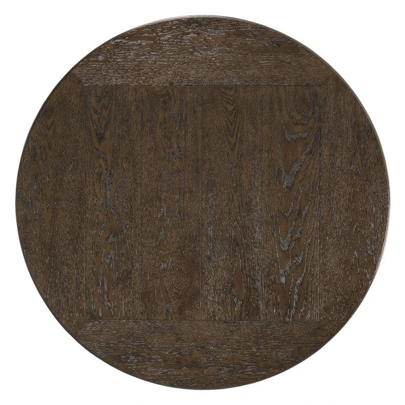 Designed in the spirit of the Gothic Revival style made popular in the 19th Century by Augustus Welby Northmore Pugin. A round veneered top rests over an angled center post and brackets joined by an X base.