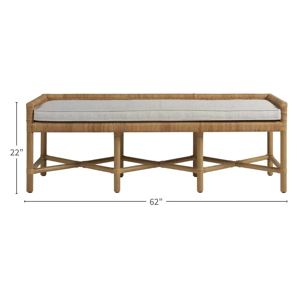 Boasting a gorgeous blending of textures, the Escape Pull Up Bench features an upholstered cushion nestled within a casually chic wicker body with subtle crisscross detailing.
