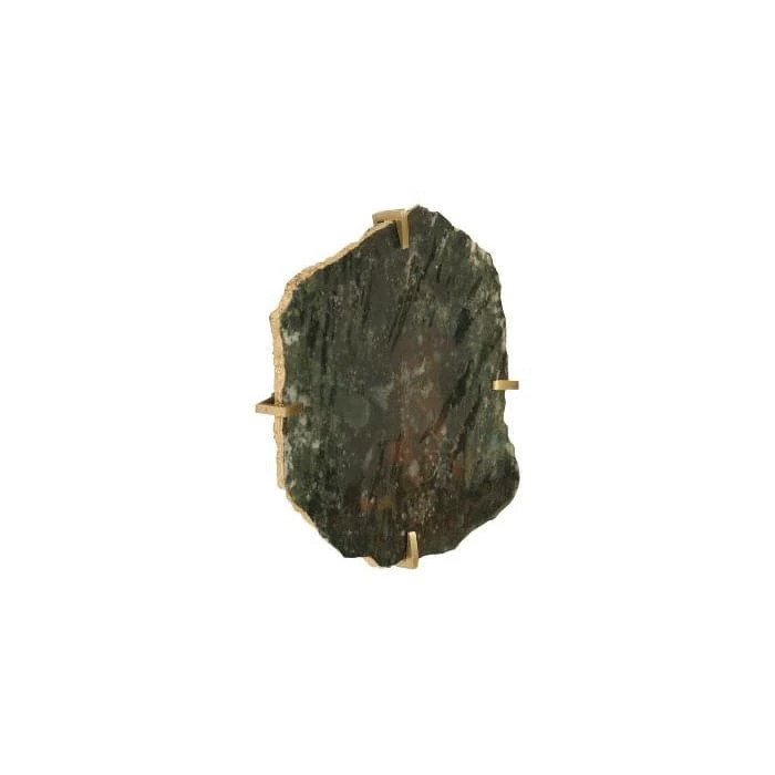 Semi-Precious Stone set in a solid brass frame, the Gem Wall Tile can be arranged on the wall at 4 different angles, making them great for mixing and matching styles. With six styles available, the possibilities are endless. And since they are cut from natural stone, each piece will vary slightly in shape and color, making each piece one-of-a-kind.