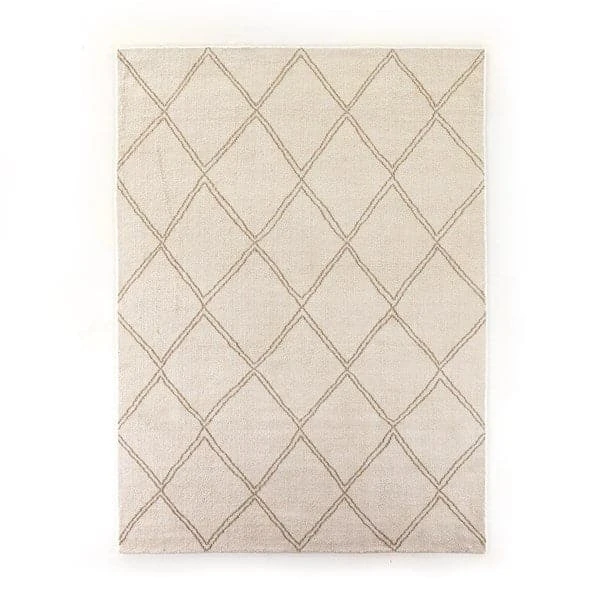 Clean lines inspired by Beni Ourain rugs. Woven fibers made from 100% recycled PET materials in natural hues create a neutral palette for any style. Store indoors during inclement weather and when not in use.