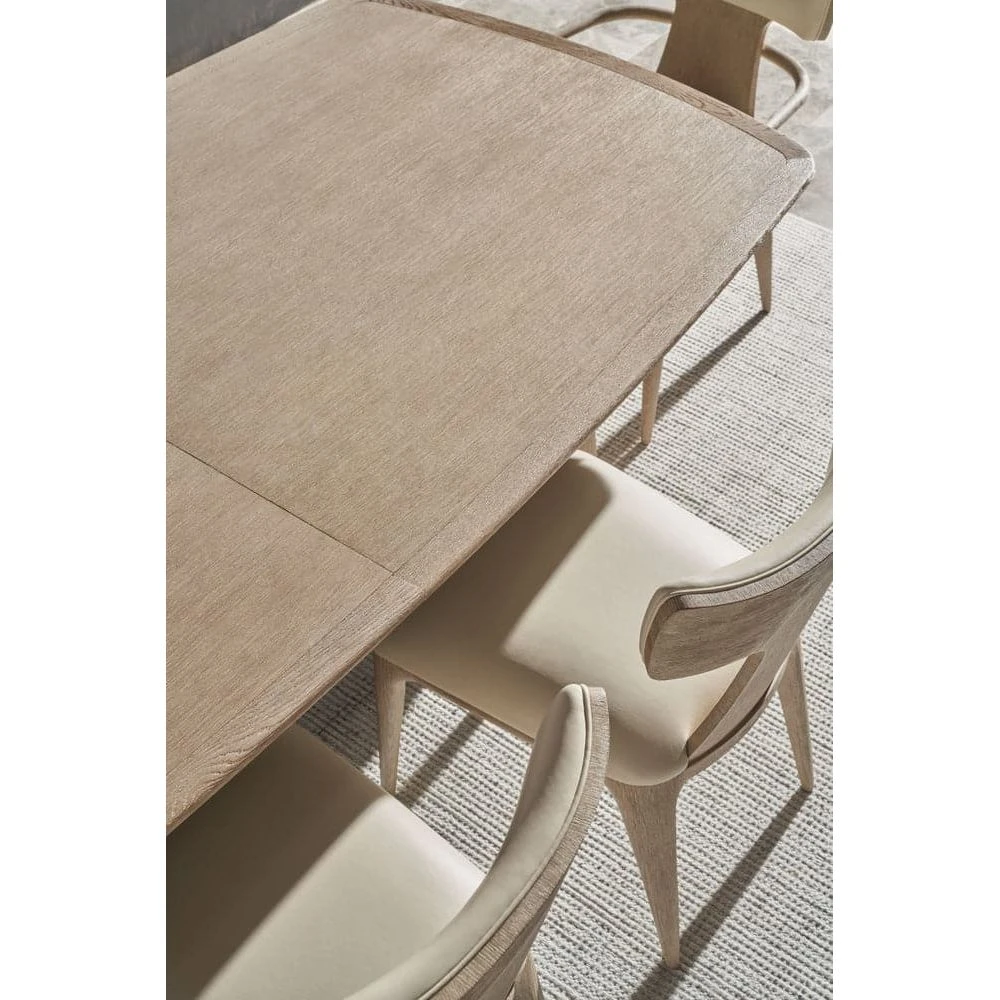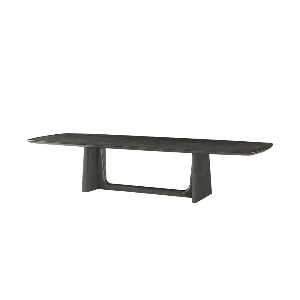 The Repose Rectangular Extendable dining table boasts a seating arrangement of 8 to 12 people. Easily extendable, the table features a beautiful beveled edge wood veneered top and handcrafted quarter straight cut Oak Veneer in Grey Oak and Charcoal Oak.