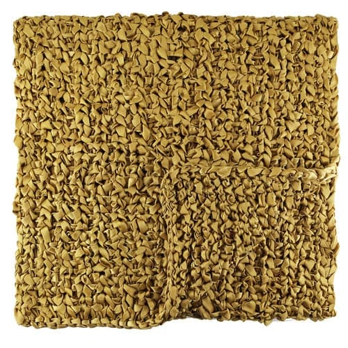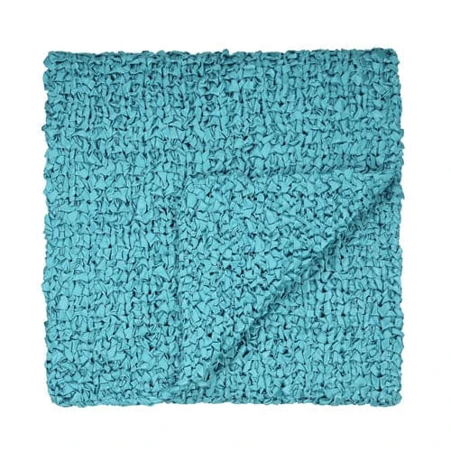 Add texture with this hand-knitted ribbon throw. Throw measures 96×24 but may stretch as it is a knit.