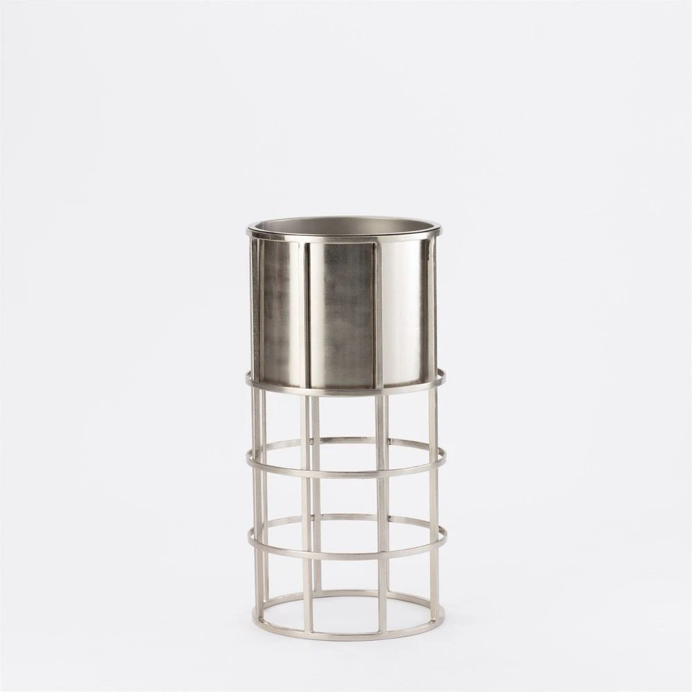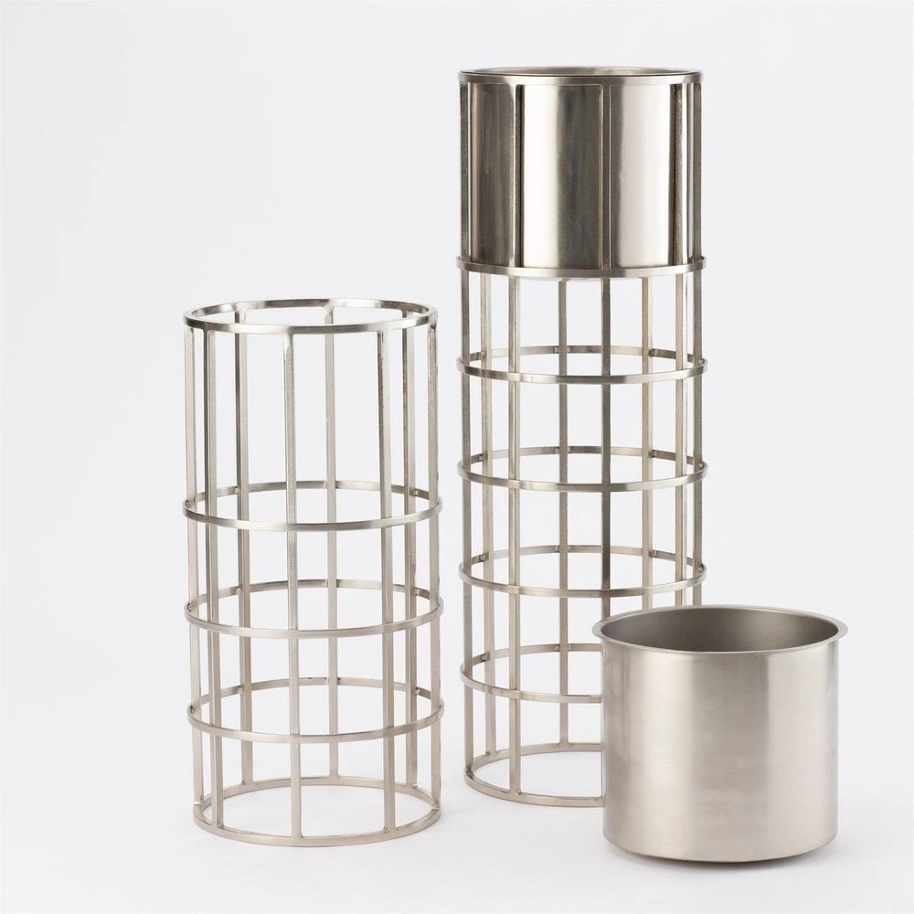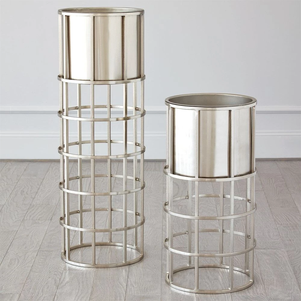 Description: Live plants and floral arrangements will make a significant statement in any space, and great standing planters are key. The Ringed Planter Collection features a brushed metal finish for durability and visual appeal. These are perfect for bringing life into a corner of the room or in a place of prominence. Available in 2 sizes. Use individually or as a set. Each sold separately.