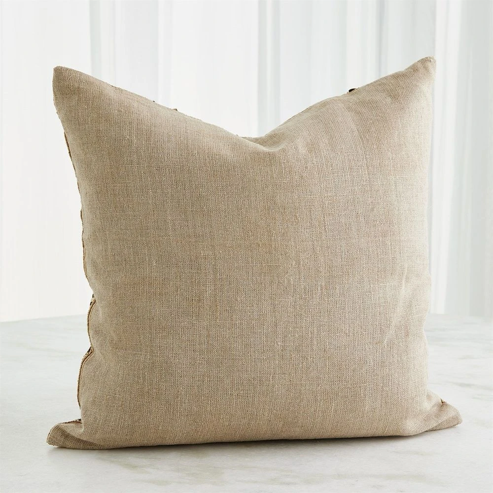 Description: The Roman Beaded Pillow is a handcrafted masterpiece with beaded and embroidered details. This exquisite creation is complemented by a luxurious down-fill insert, offering both style and comfort.