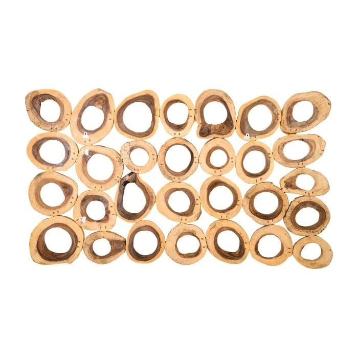 Freeform end cuts of Chamcha Wood are hollowed out and connected to form these large scale organic wood wall panels.