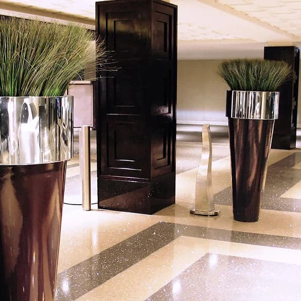 Made-to-order in our Chicago studio. Indoor only, no drainage hole. We can manufacture for outdoor use using gloss automotive paints, change color, finish, add drainage hole and interior water proofing for an additional charge. Additional protection may be required for use in excessive heat, direct sun, chlorine and salty environments.