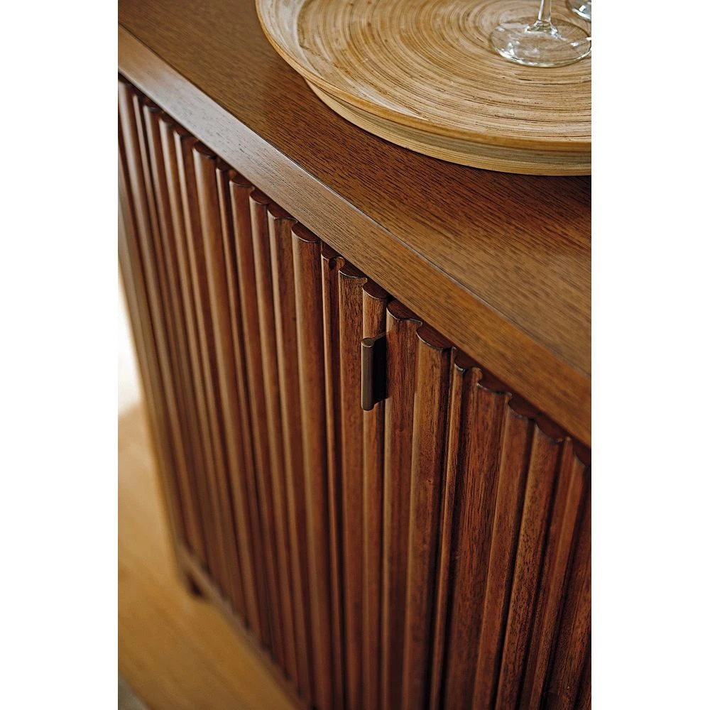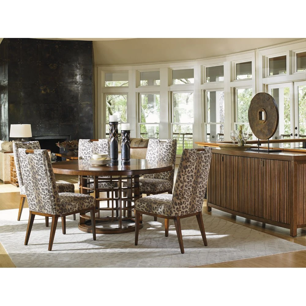 Marketing Copy: With a refined yet restrained aesthetic, Pan-Asian design ascribes great value to visual composition, clean disciplined lines and the goal of infusing tranquility into today’s contemporary décor. Island Fusion embraces the Zen side of Tommy Bahama Home, with bold designs that blend horizontal and vertical elements, dramatic statement hardware and accents of eclectic natural materials that offer a unique look to every piece. The result is a striking modern expression of personal style, with a vibe that feels relaxed and livable. Statement pieces define the room, while custom upholstery offers an invitation to enjoy the laid-back comfort of casual sophisticated living.