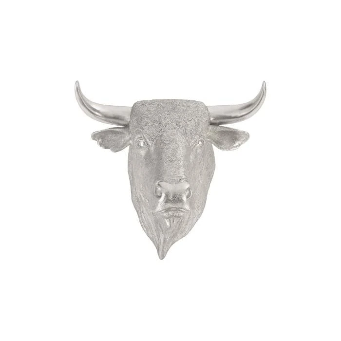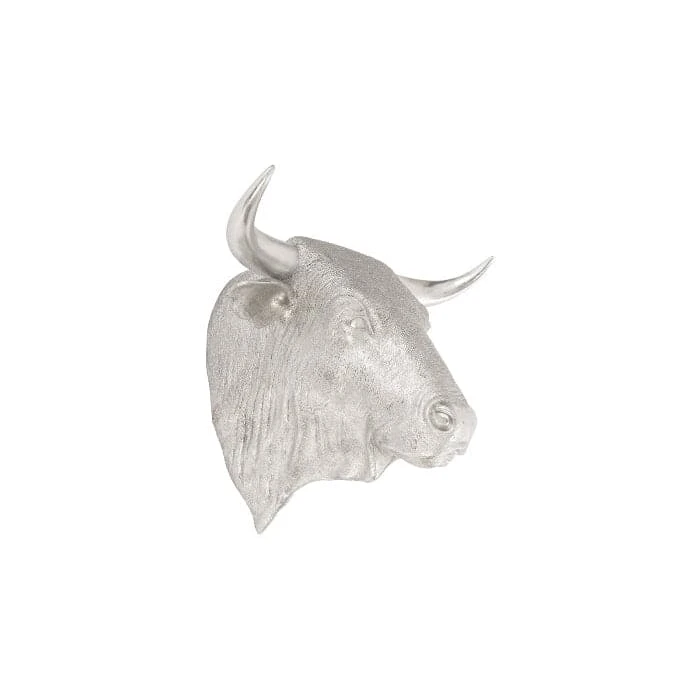 Cast in artisan-grade resin and hand finished in silver leaf, this realistic Spanish Fighting Bull is made modern with a signature touch of glamour. It is the perfect addition to make a statement on any wall.