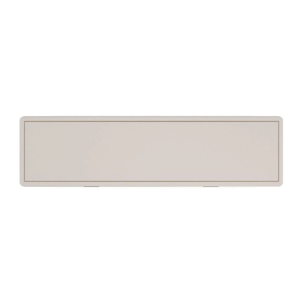 Mirror-like drawer fronts introduce a warmly reflective aesthetic, created from v-groove cut, back-painted glass in a striking radial pattern. A silkscreened pinstripe detail frames the top and adds a touch of luxe, complemented by tapered legs dressed in Bronze Gold ferrules. Eight soft-close drawers offer tucked away storage, with Linen-painted interiors to coordinate with its Matte Pearl frame.