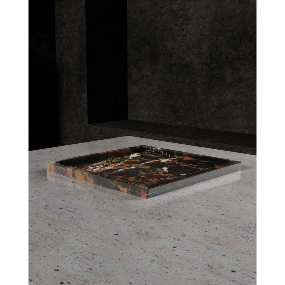 With clean lines and simple design this place tray lets the natural beauty of marble be the star of the show. This large square tray is ideal for keeping organized or displaying beloved objects. Available in black & gold, cloud gray, or pearl white.