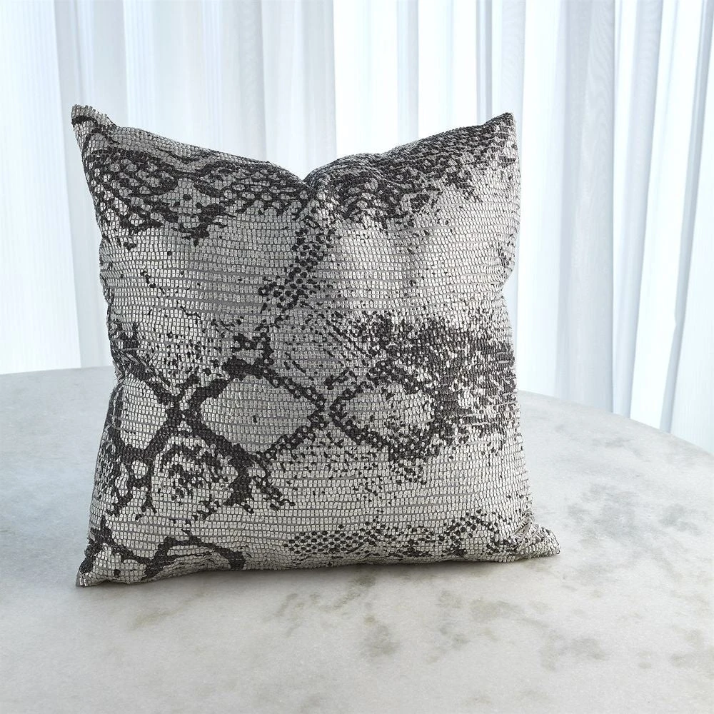 This fashionable pillow is hand-beaded and filled with a luxurious down insert.