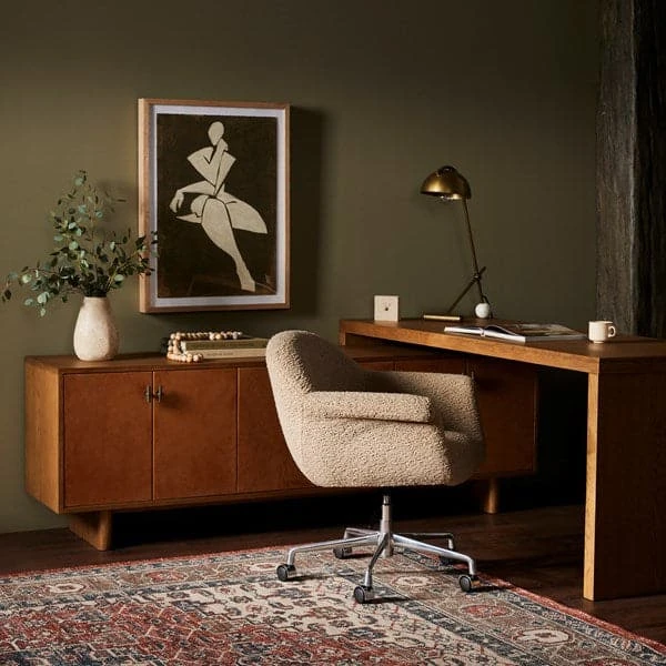 Reflect your unique style with a modular desk and matching media console of amber-finished oak and cognac top-grain leather. Arrange to suit your space, while adding plenty of storage space to the office.