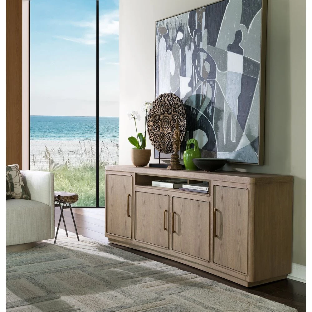 Marketing Copy: Great Room collection featuring New Traditional to Transitional original designs dressed in a natural white oak finish with light wire brushing and a silky, dry hand and appearance. Accent materials include Italian Carrara marble, natural seagrass, iron, and nature-form castings of Brazilian slate finished in champagne bronze. The term New Traditional is overused and typically undefined. To us, it means taking forms that have existed for many generations and interpreting them into the present as fresh and versatile designs with textural, on-trend finishes and materials…Simpatico represents exactly that.
