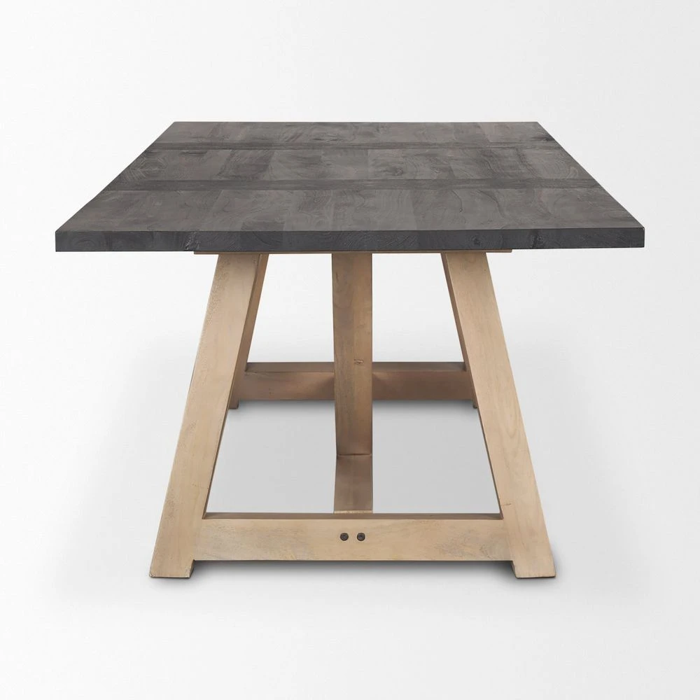 Description: Solace Rectangular Two-Tone Black and Brown Solid Wood Dining Table