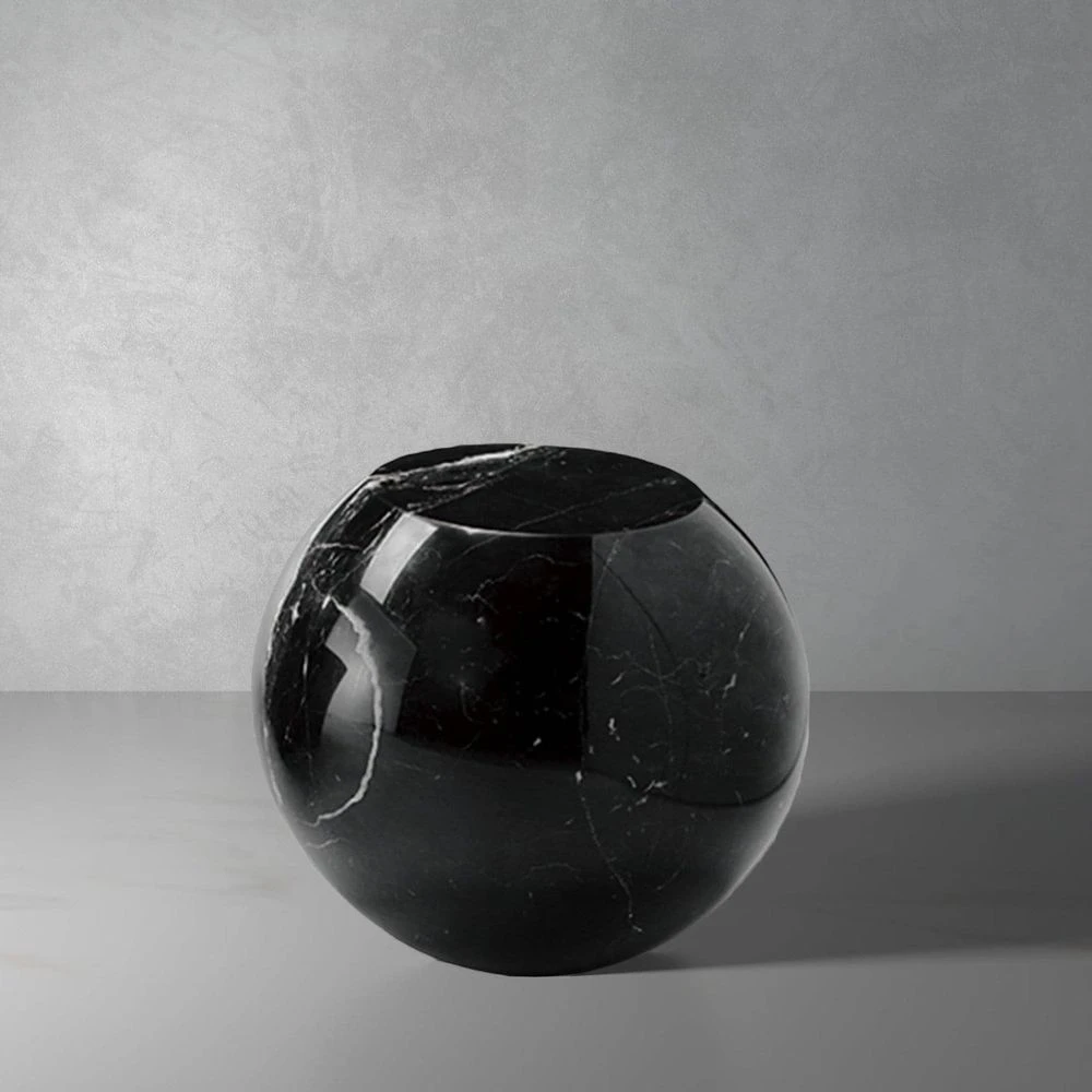 This spherical marble side table is the perfect addition to any living space. Crafted from black marble this table has a smooth polished finish and a round design that will work well with almost any contemporary design style.