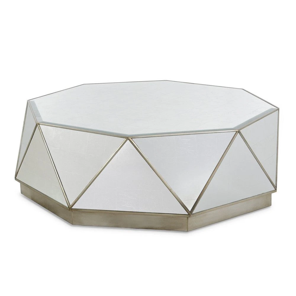 Description: This contemporary cocktail table features faceted eglomise mirror surfaces. The sparkling