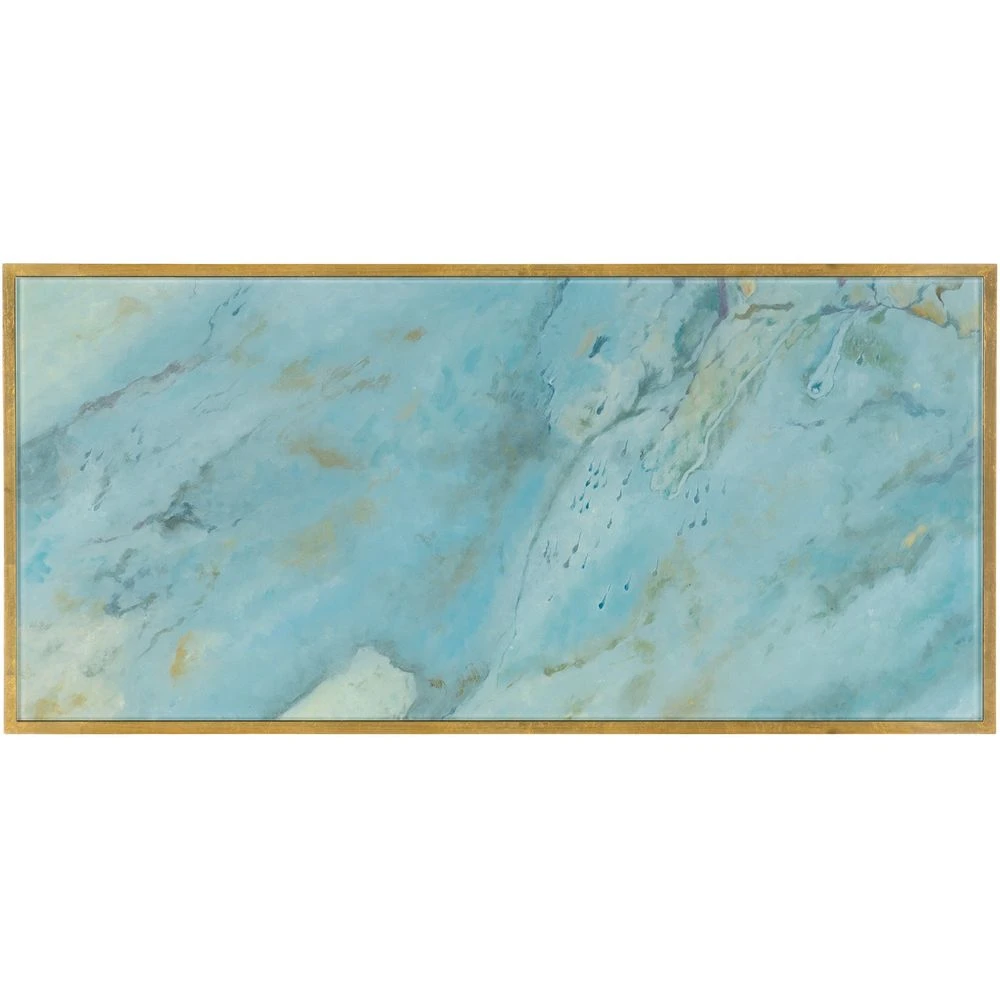 As mesmerizing as a Monet painting in the refreshing color palette of a blue lagoon, the Sorrell Five-Drawer Chest is crafted of reverse handpainted glass with goldleaf legs and frame and brass-finished metal knob hardware. Come closer to Melange, and you will discover something unexpected, an eclectic blending of colors, textures and materials in a vibrant collection of one-of-a-kind artistic pieces.