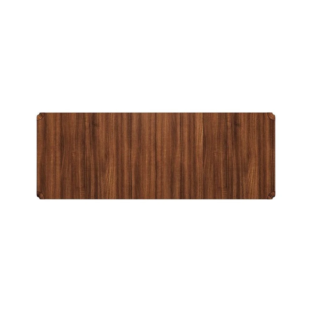- Table finished in Rich Walnut with Dark Chocolate accents.