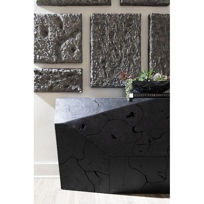 The Etched Rock Puzzle Wall Tiles offer a striking and unique addition to any interior space. Crafted from natural slate, each tile is hand-etched to create a mesmerizing geometric pattern. The tiles can be arranged in a variety of configurations, allowing for endless design possibilities.The overall dimensions are approximate. The wall pieces are approximately spaced out 1″ from each other. Please note these can be placed in any direction or configuration. The overall dimensions can change due to how versatile the pieces are.