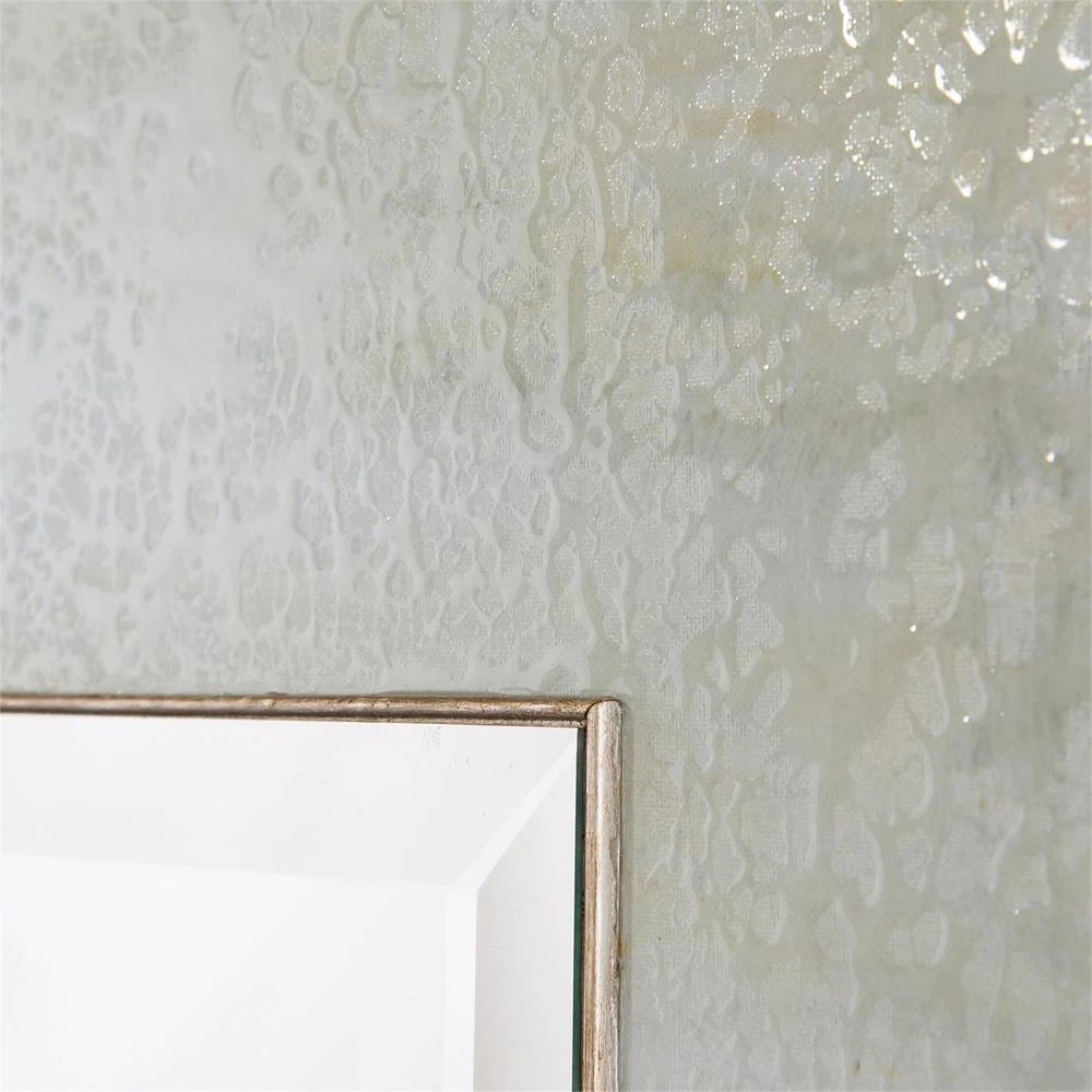 This stunning beveled mirror features “As The Water Flows” by artist Susan Gunter on canvas across the rectangular frame. A vitreous finish overlaying the canvas simulates the look of flowing water, completing the look of this dynamic statement piece.