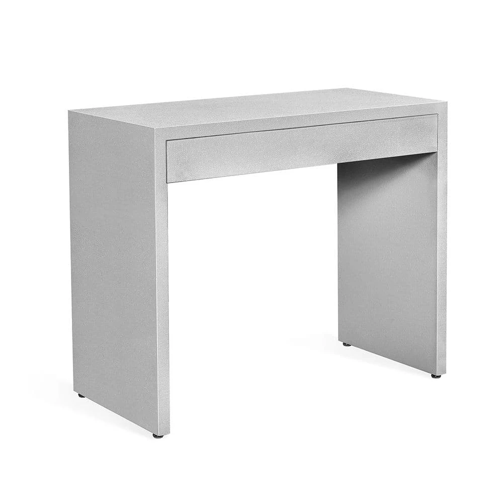 Chic enough to turn work into a fabulous moment, the Taylor Petite Desk features natural white faux linen and metal hardware in a champagne silver finish.