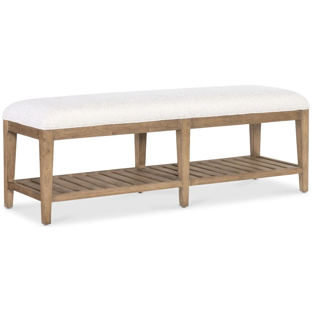 Description: Inspired by the organic beauty of California wine country, the Terrace Row Bed Bench is a chic and functional piece ideal for the foot of a bed or even for extra seating in a hall or bedroom. The seat is upholstered in the White Zin fabric, a perfect complement to the light and airy Sonoma finish over the wood frame and slatted bottom shelf. 24 inches long.