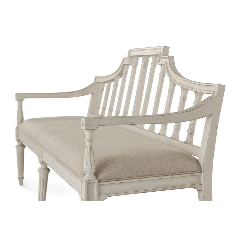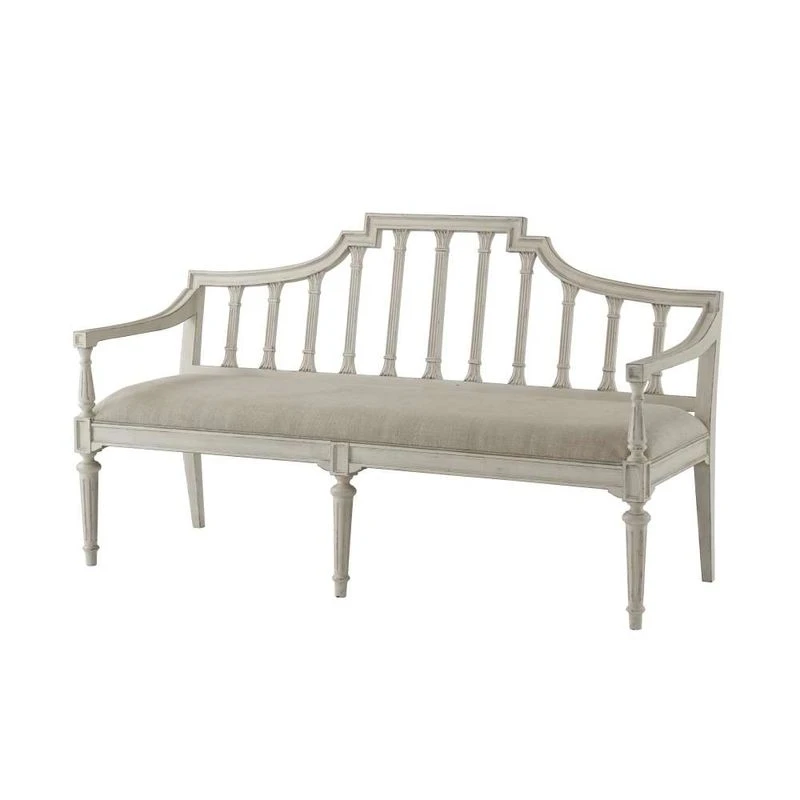 - Molded Angular Arched Back Rail with Carved & Fluted Slats