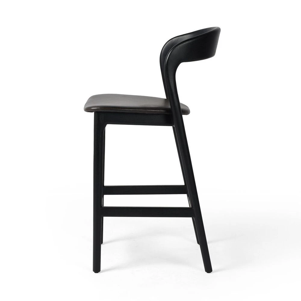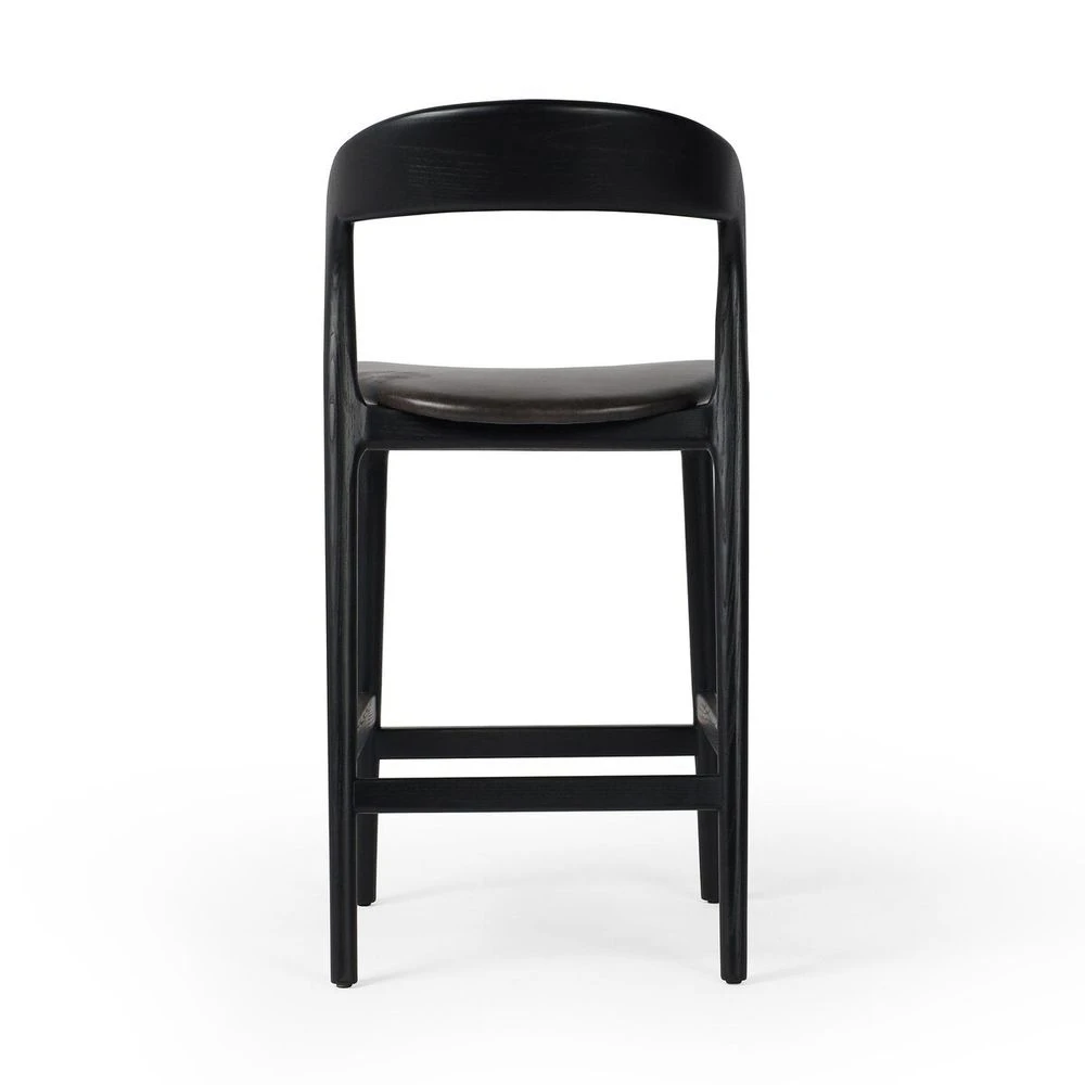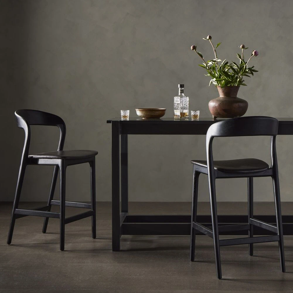Modern monochrome, perfectly sized for the counter. Inspired by simple Scandinavian styling, black-finished solid ash forms a shapely open frame for black top-grain leather seating.
