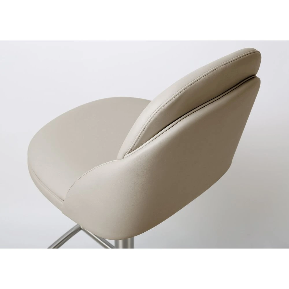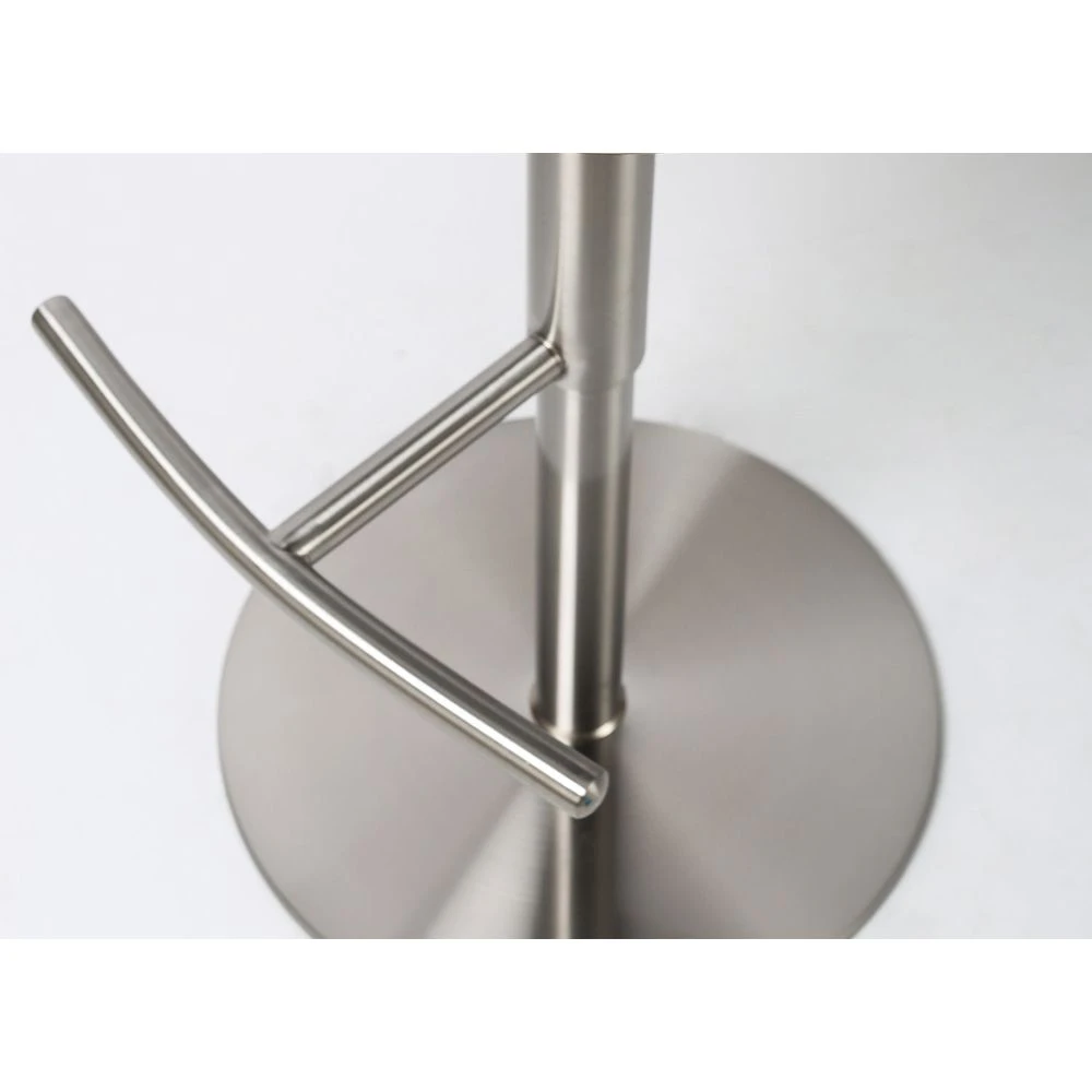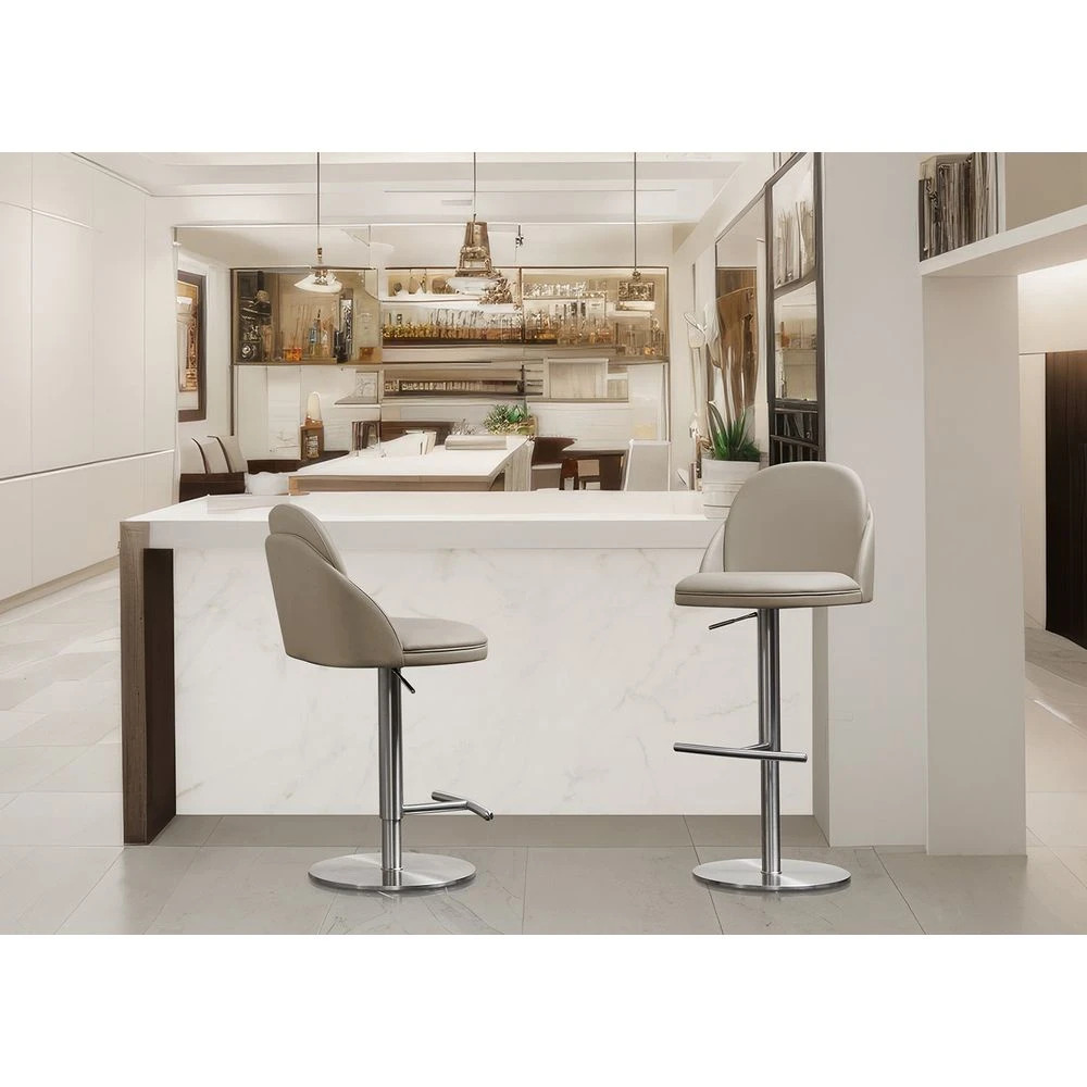 - Material: Tommy Barstool, in Light Grey faux Leather, Swivel Base in Brushed Silver Stainless Steel, with Gaslift